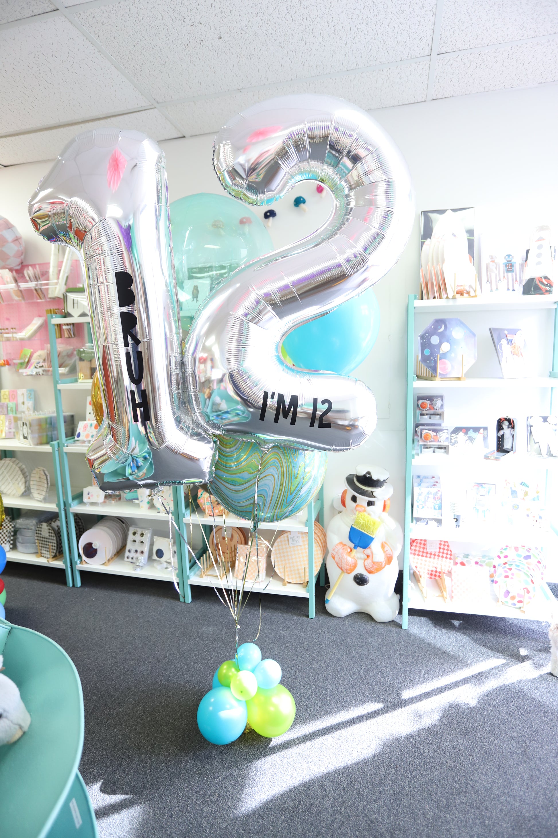 This festive arrangement features a variety of balloons, including foil and latex helium balloons. Accompanied by a mix of glossy, transparent, and colorful balloons, this bouquet is designed to create an instant party atmosphere. Give us some feedback in the Notes section and we'll follow your guidance to create something custom for you.