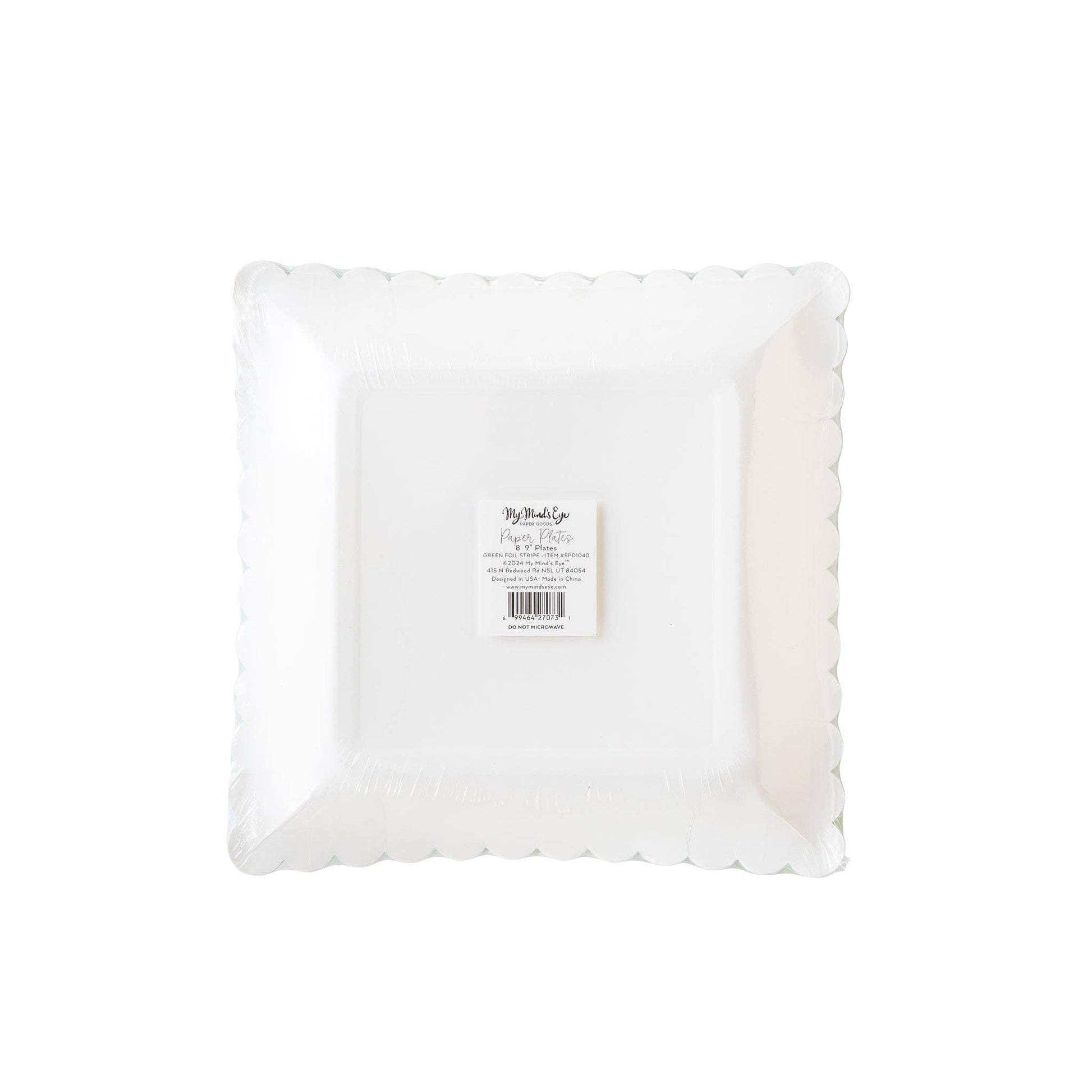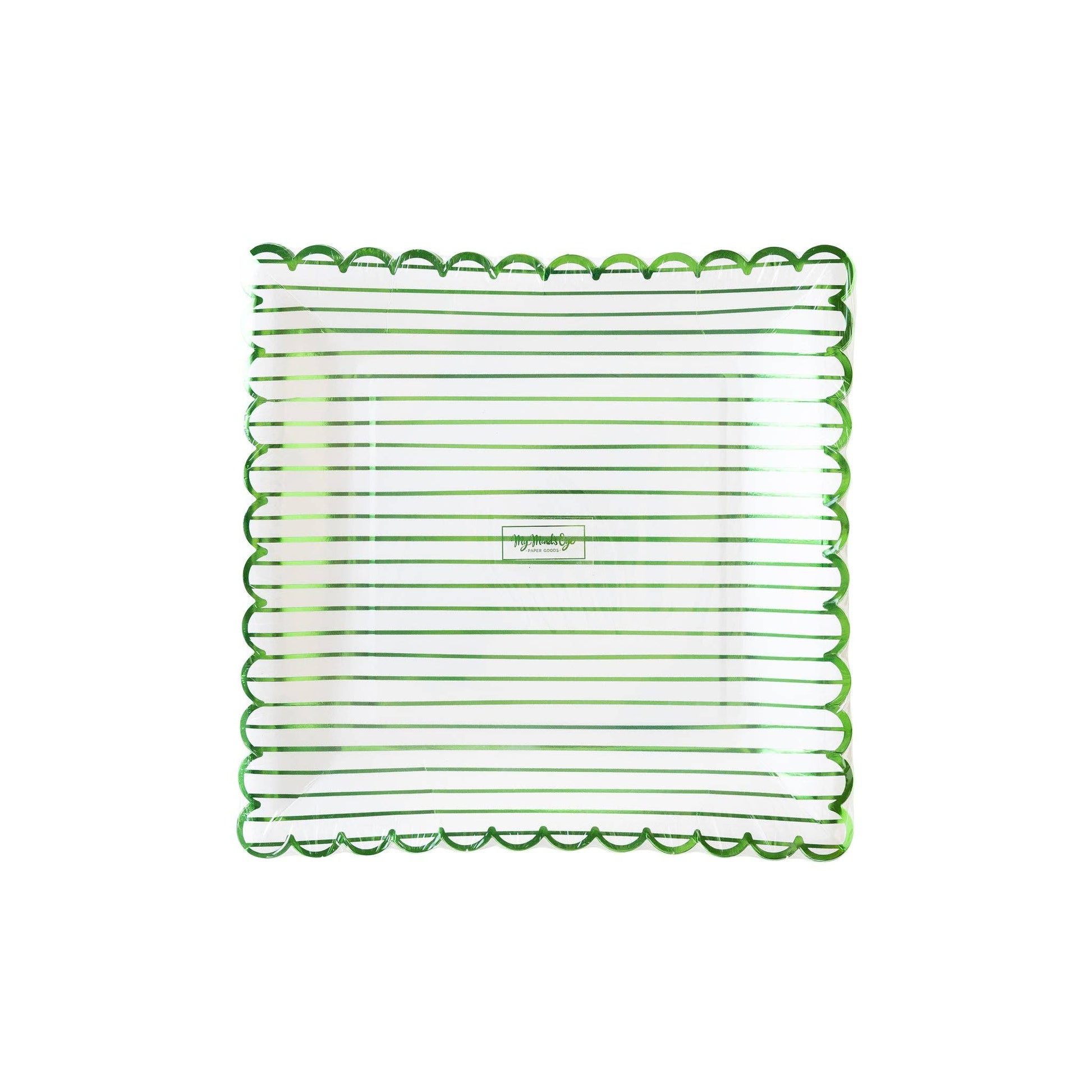 This St. Patrick's Day, share your lucky charm with our Green Striped Paper Plate. With a green stripe foil, it's sure to bring a little extra luck to your festivities! • includes 8 scalloped paper plates • 9 x 9 inches • green foil accents