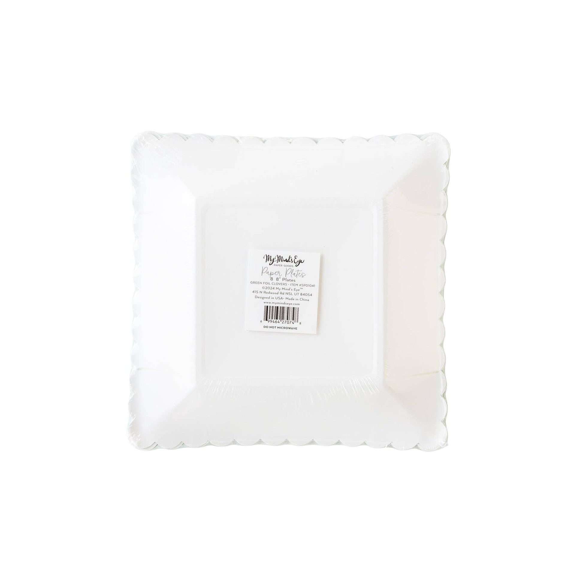 This fun paper plate is sure to get you in the St. Patrick's Day spirit! Celebrate in style with these adorable foil shamrocks, and don't forget to kiss the blarney stone! (You know, for good luck!) • includes 8 scalloped paper plates • 8 x 8 inches • green foil accents